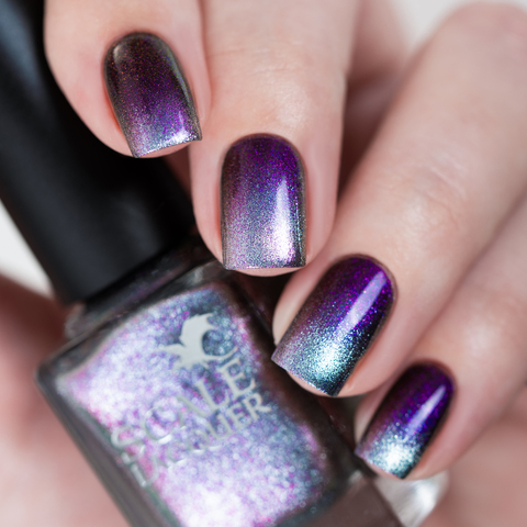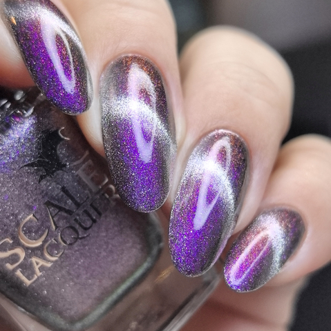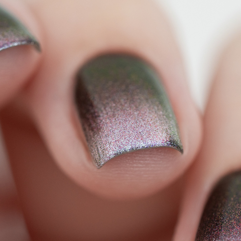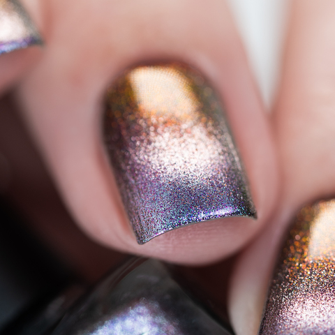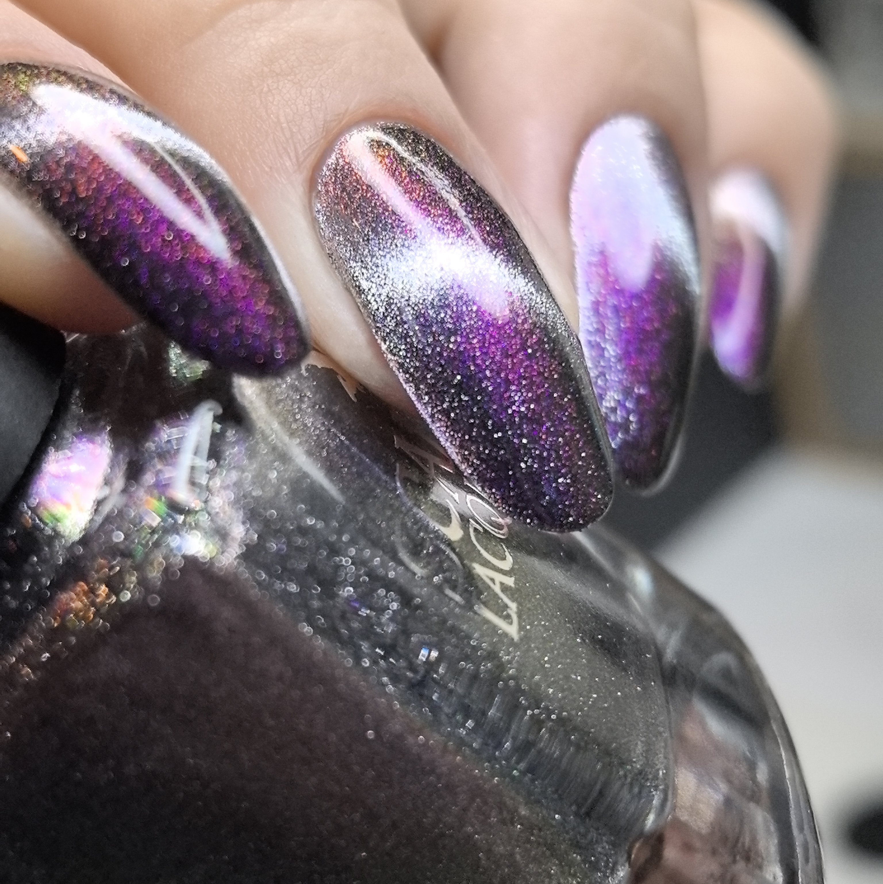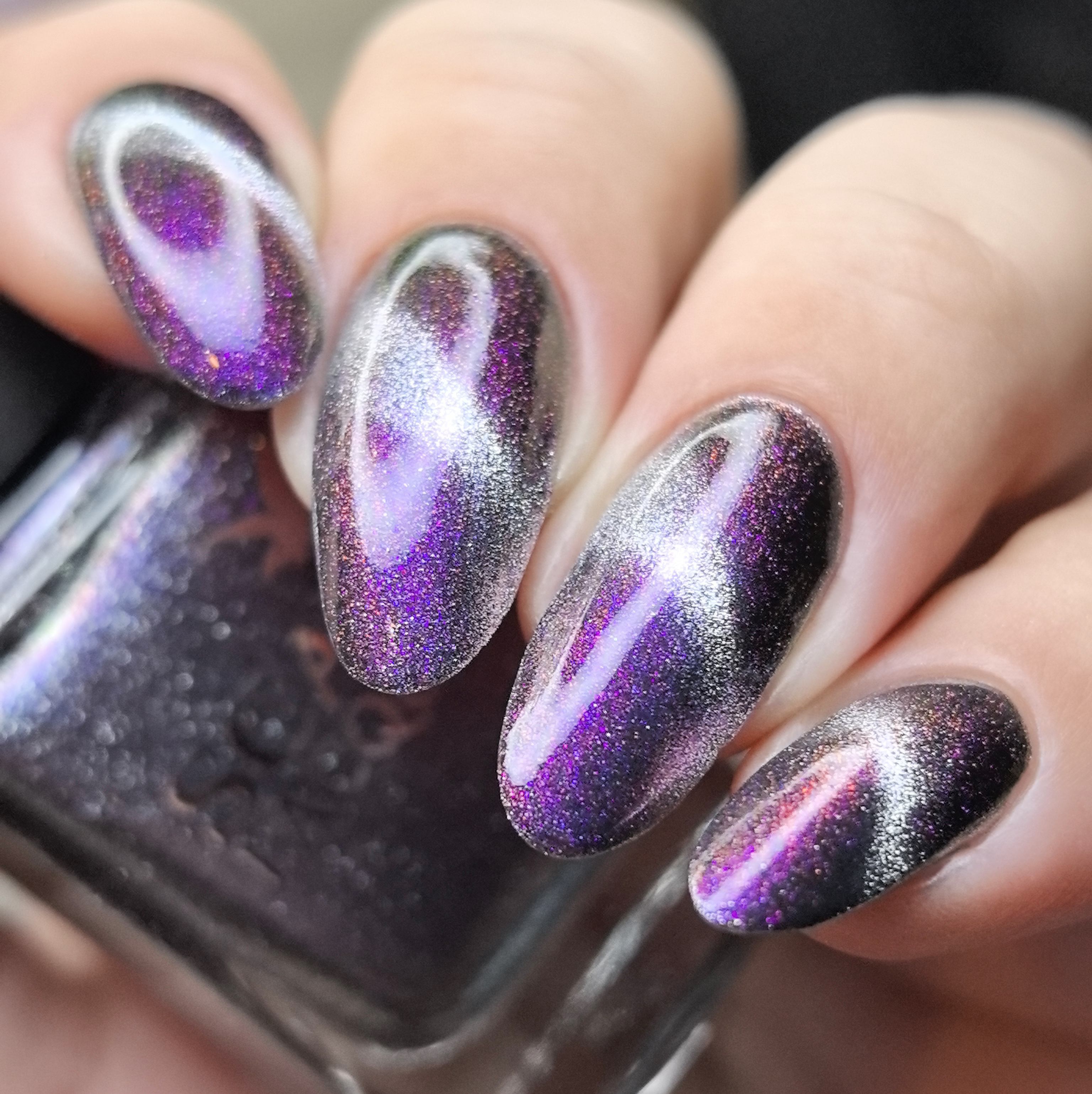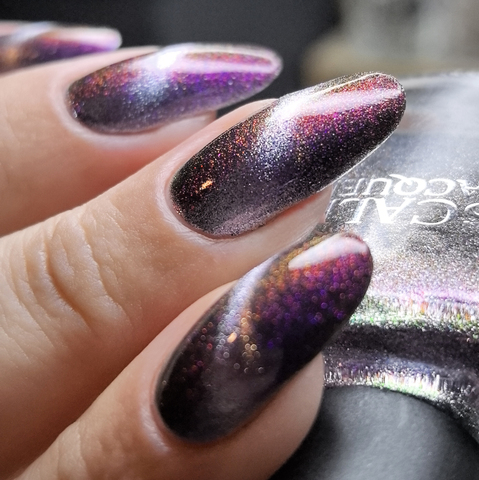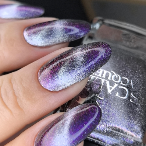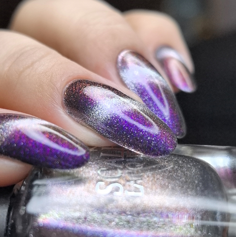 Серебряный магнит и розово-сине-фиолетово-зеленый мультихромный пигмент в прозрачной базе