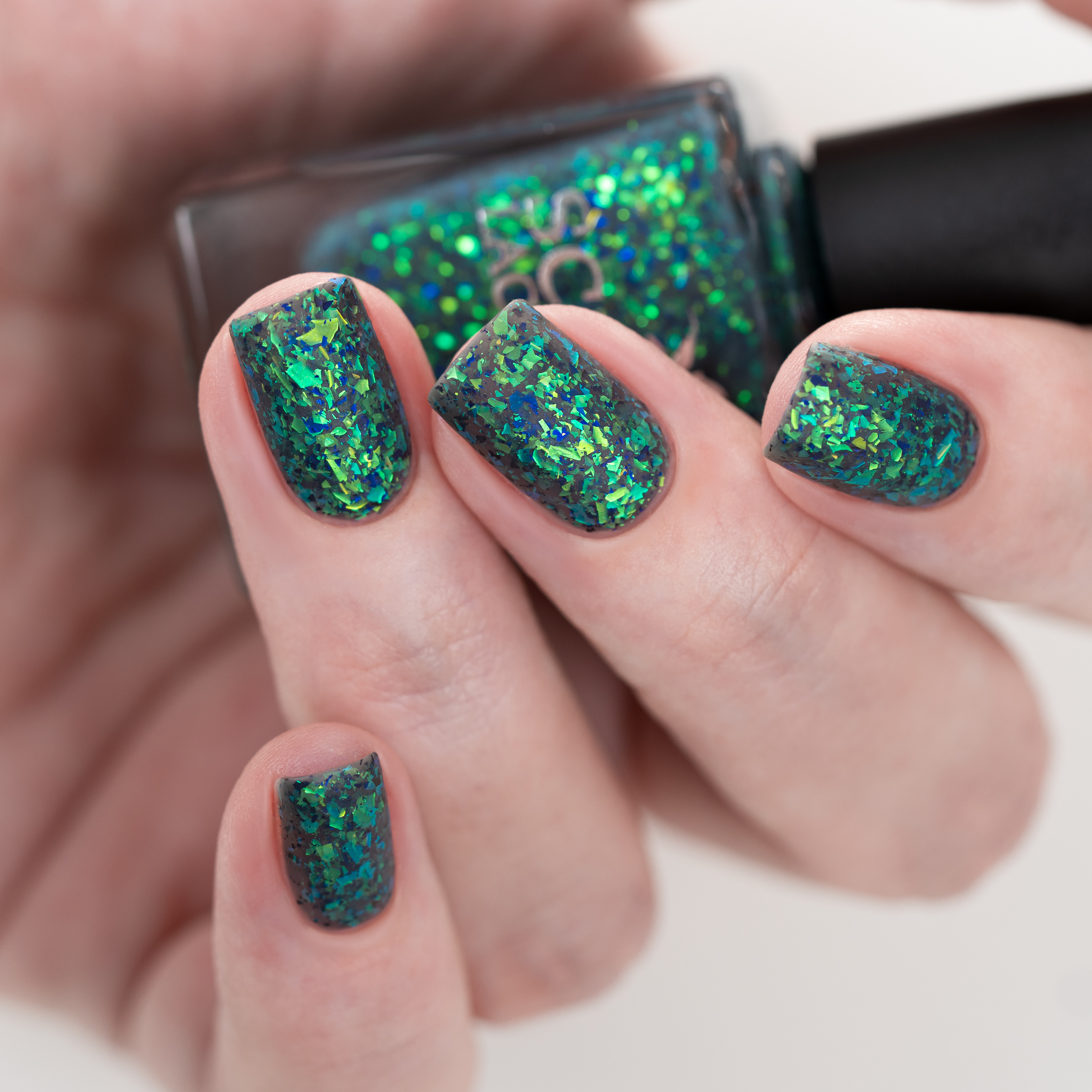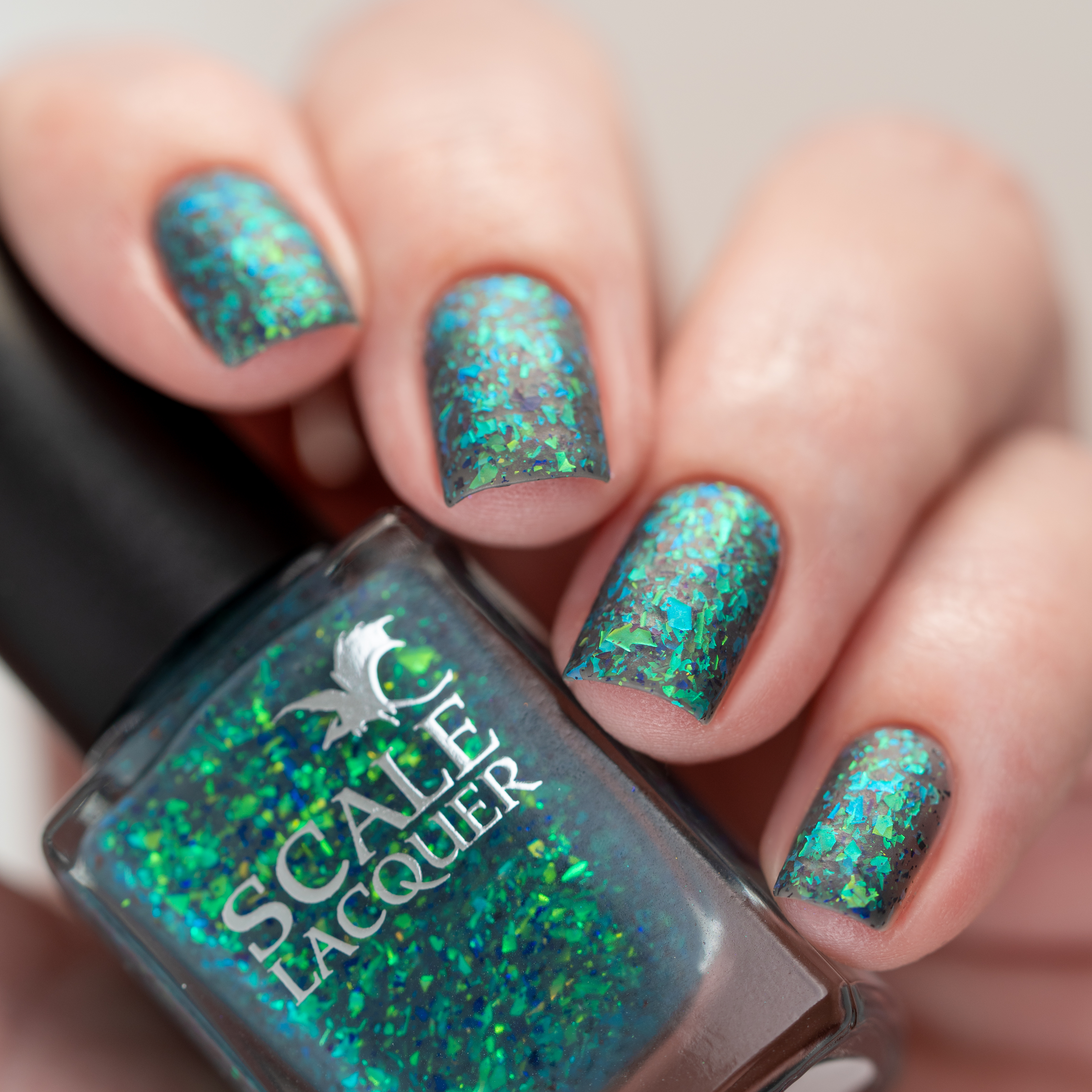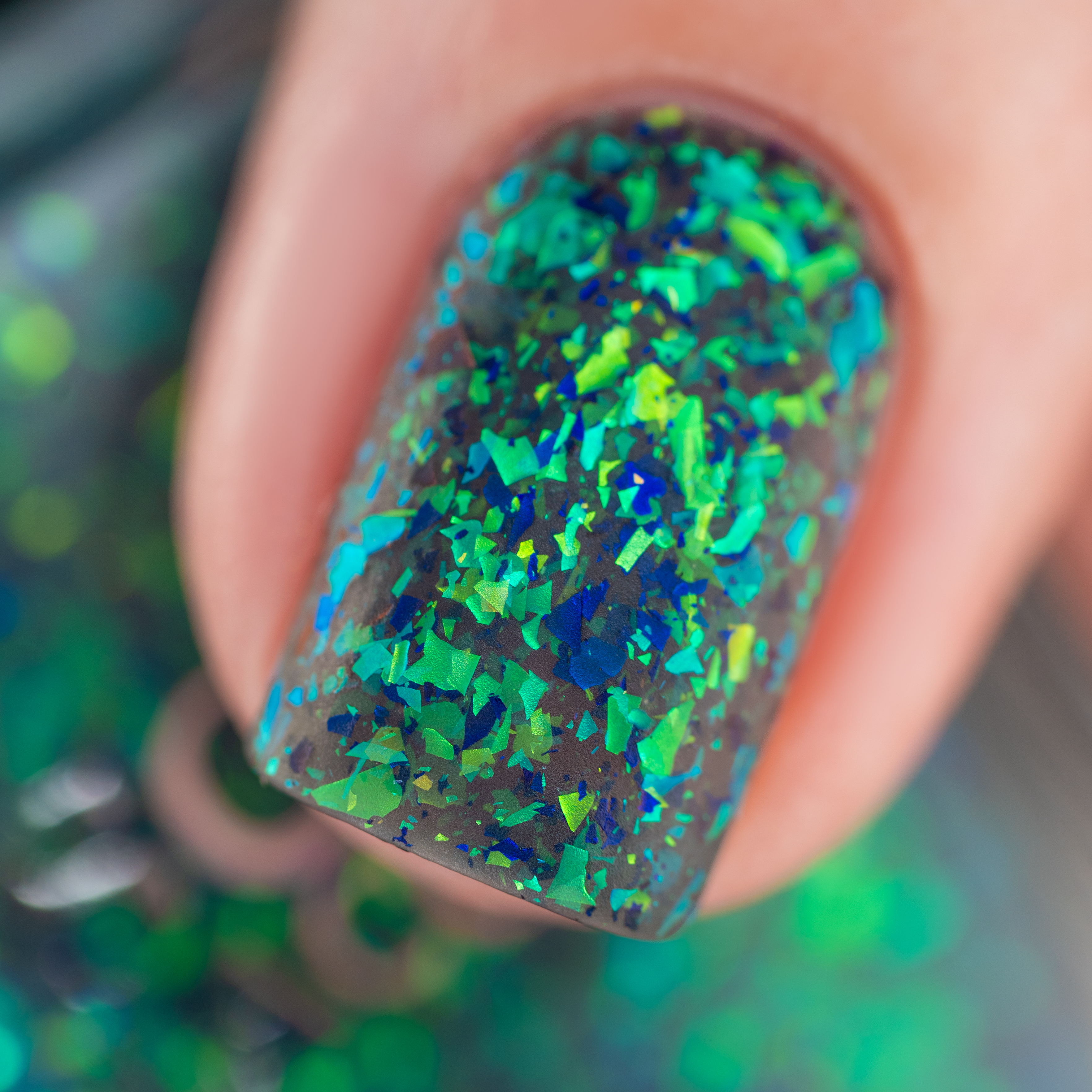 Зелено-бирюзовая и черно-синяя слюда в холодной темно-серой матовой полупрозрачной базе