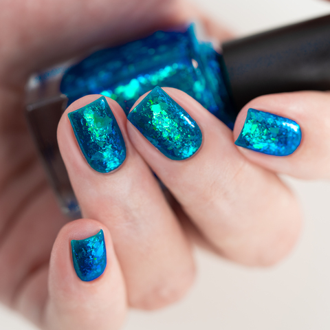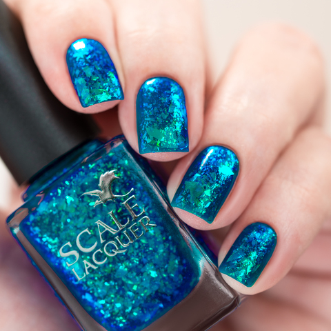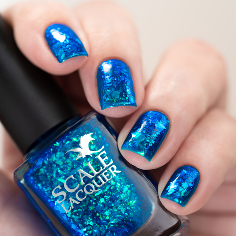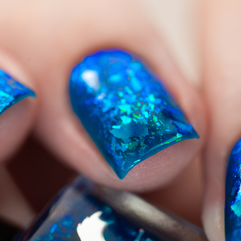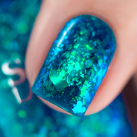 Крупная бирюзово-синяя слюда в яркой сине-голубой базе