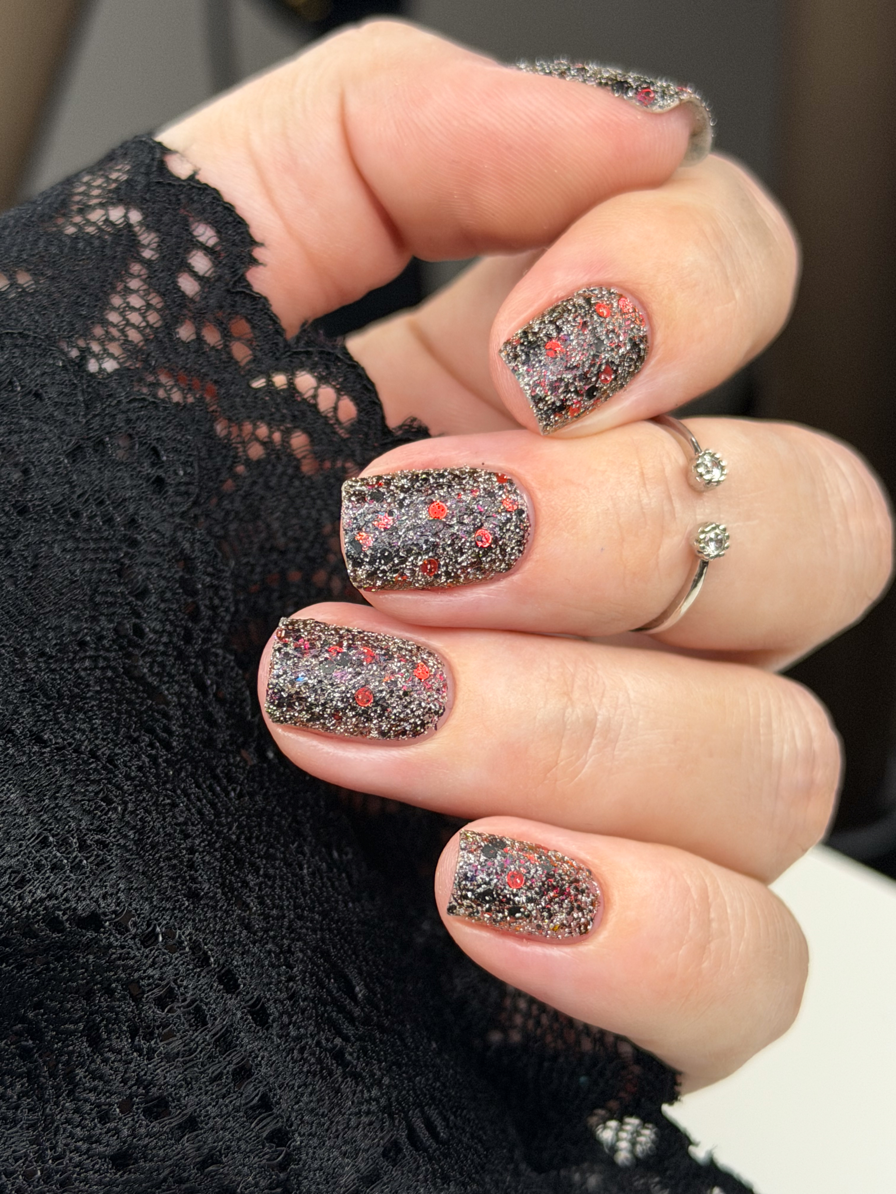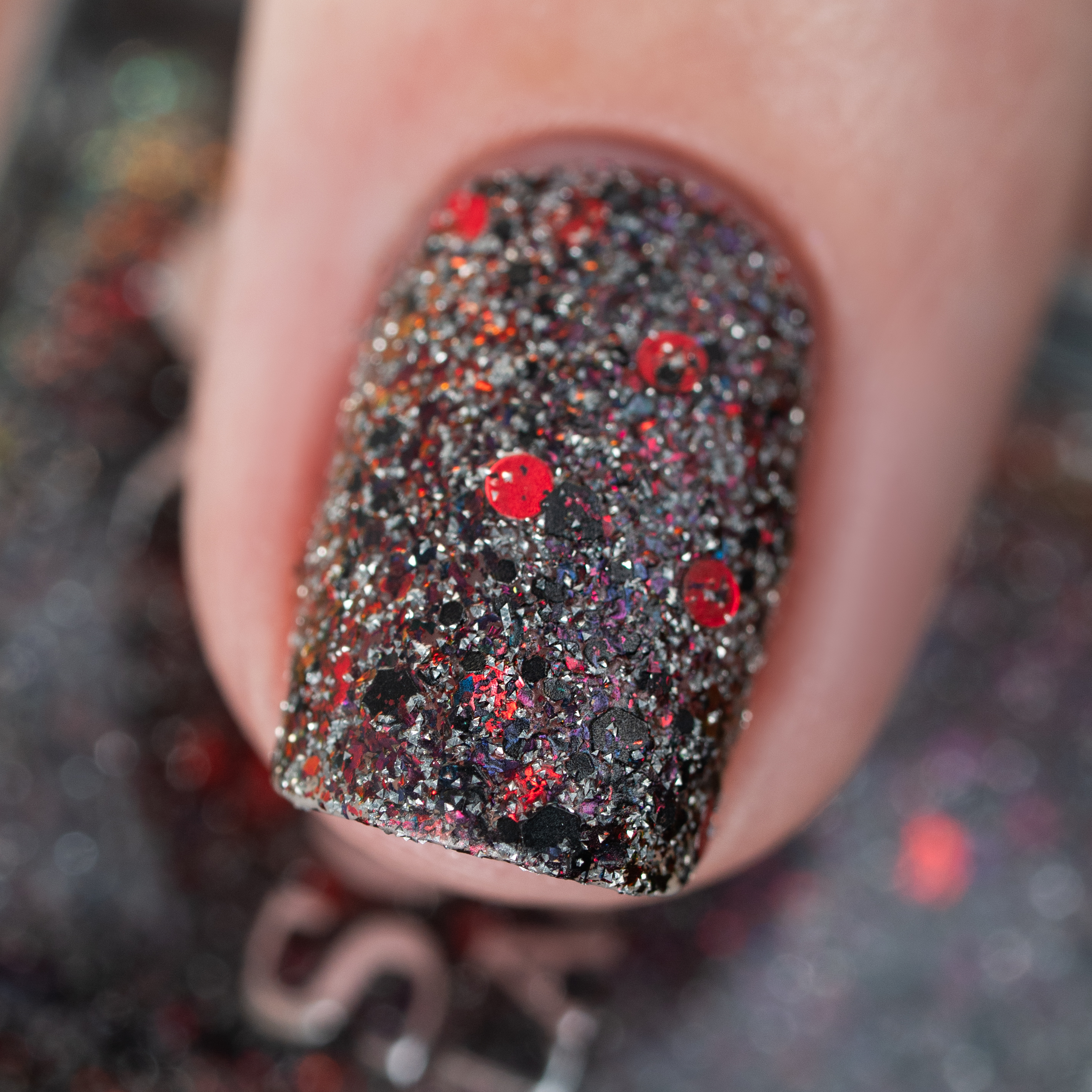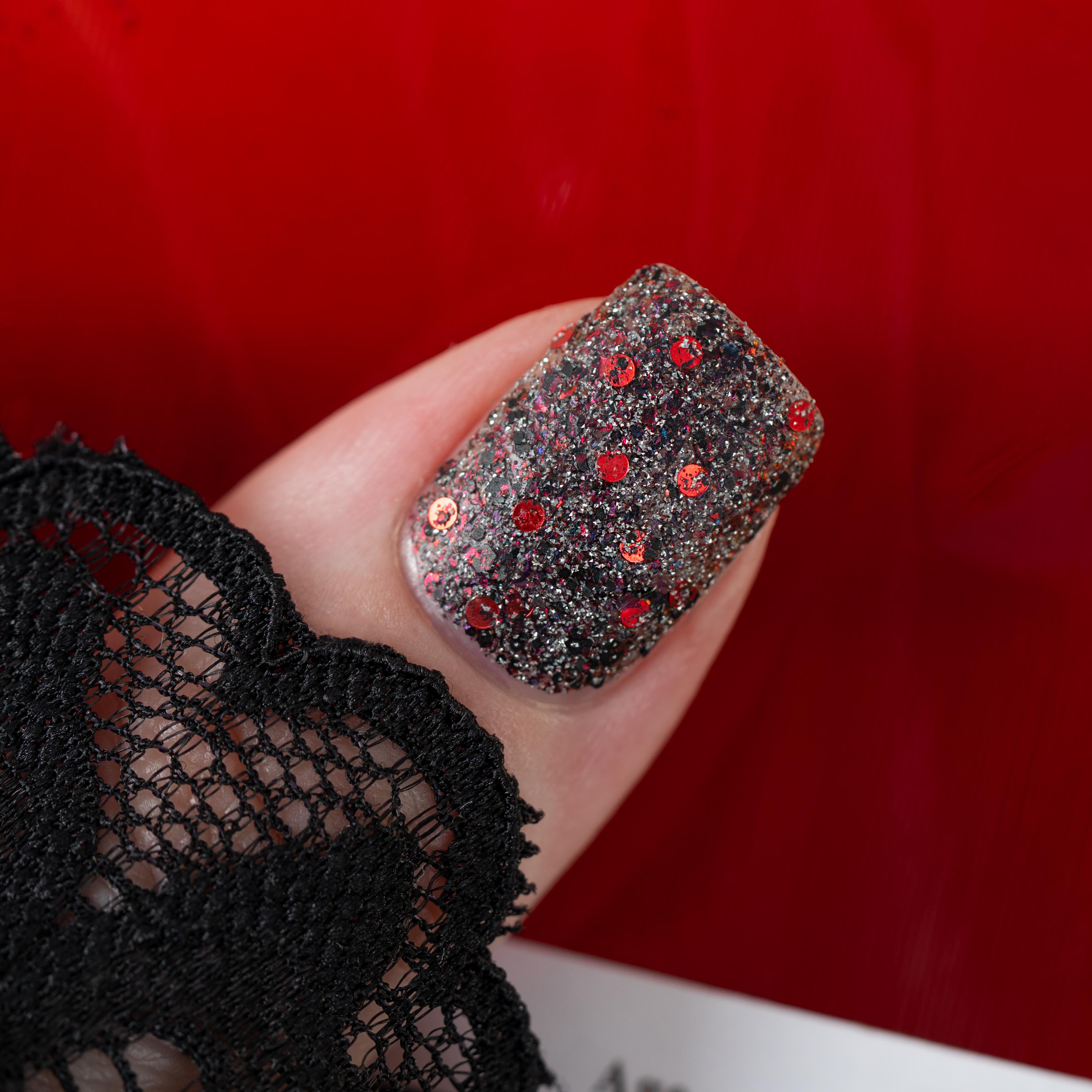 Черно-красная слюда, черный, красный и светоотражающий глиттер в сатиновой базе