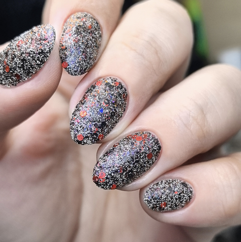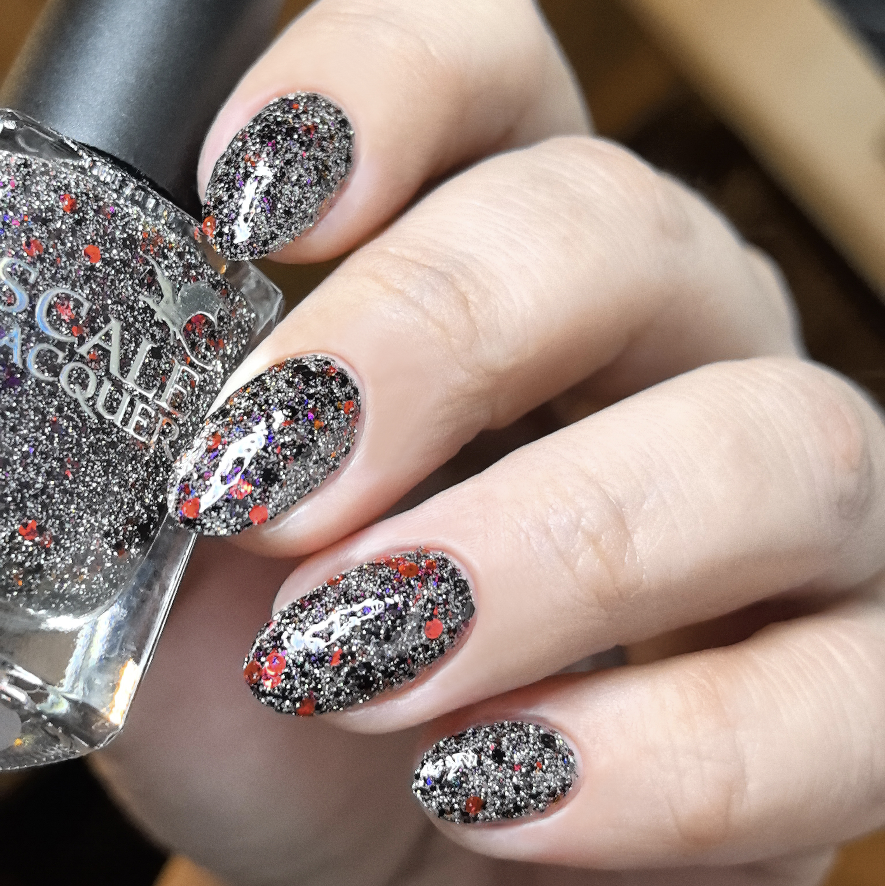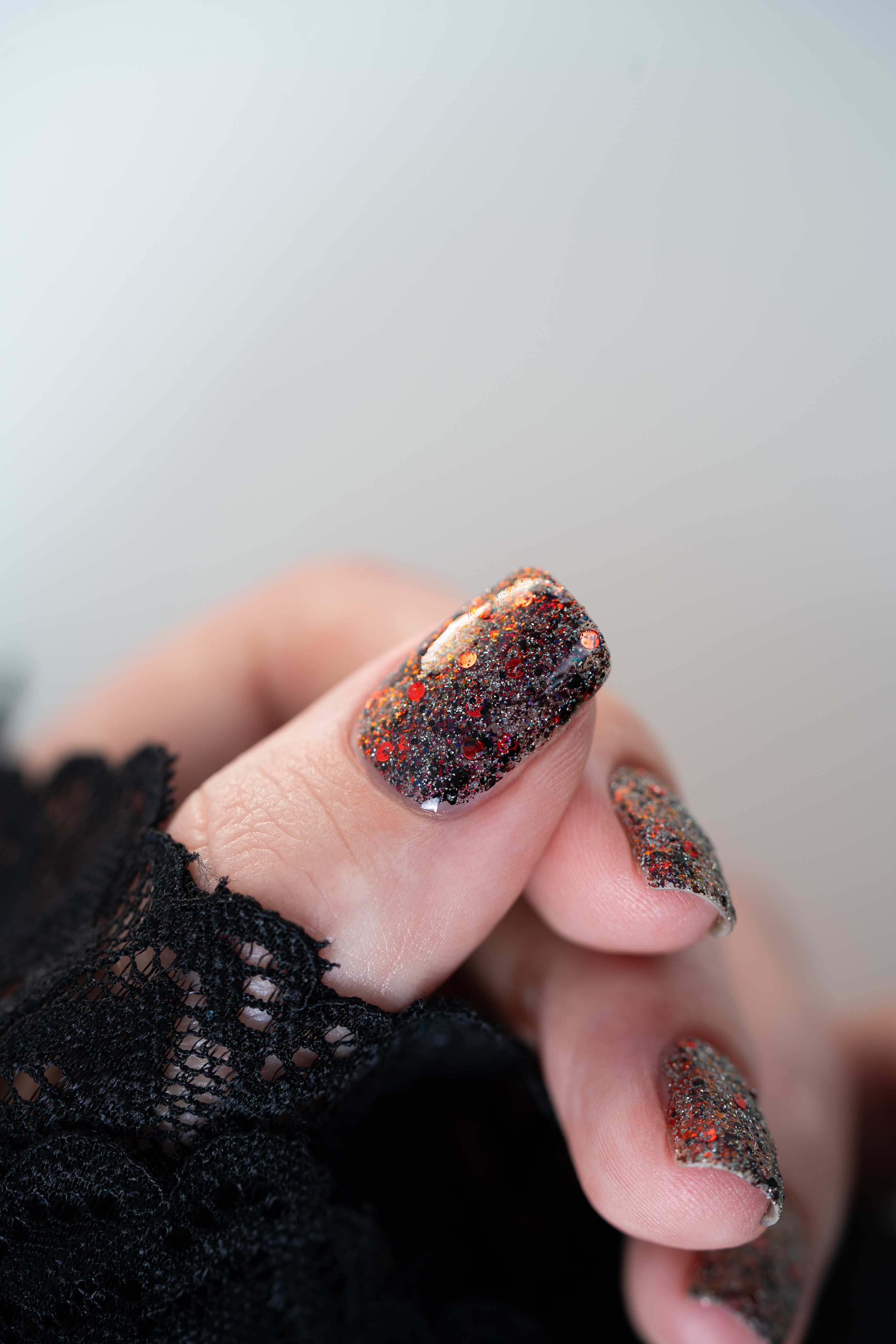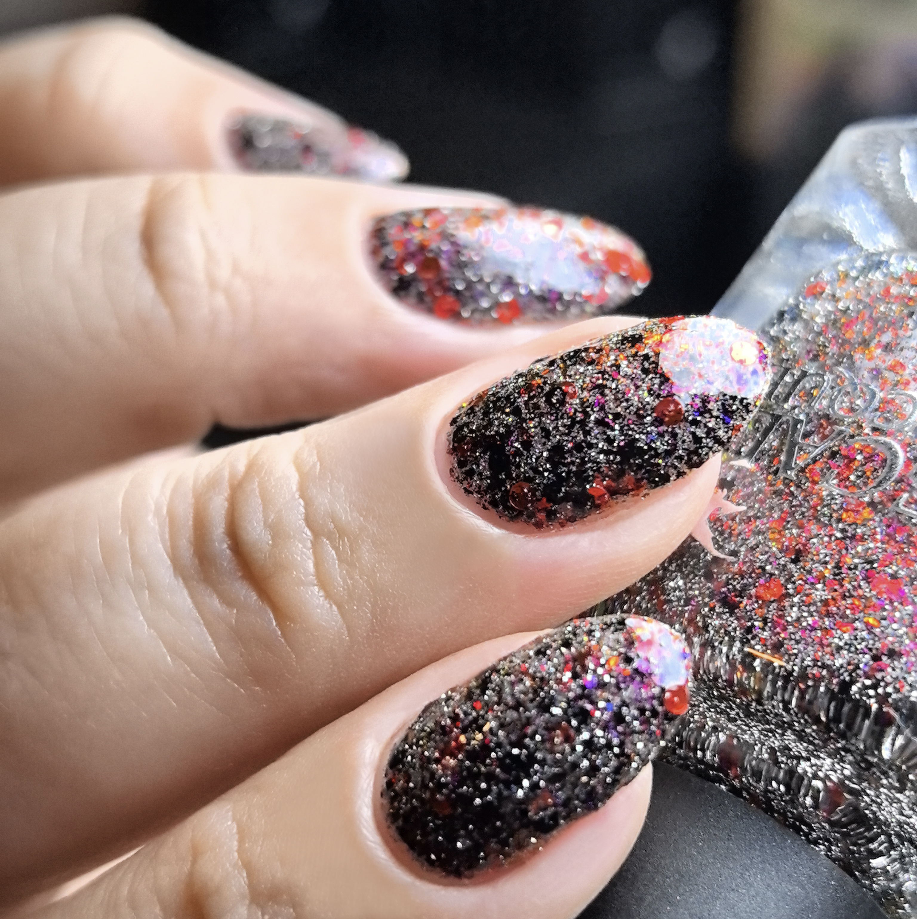 Черно-красная слюда, черный, красный и светоотражающий глиттер в сатиновой базе