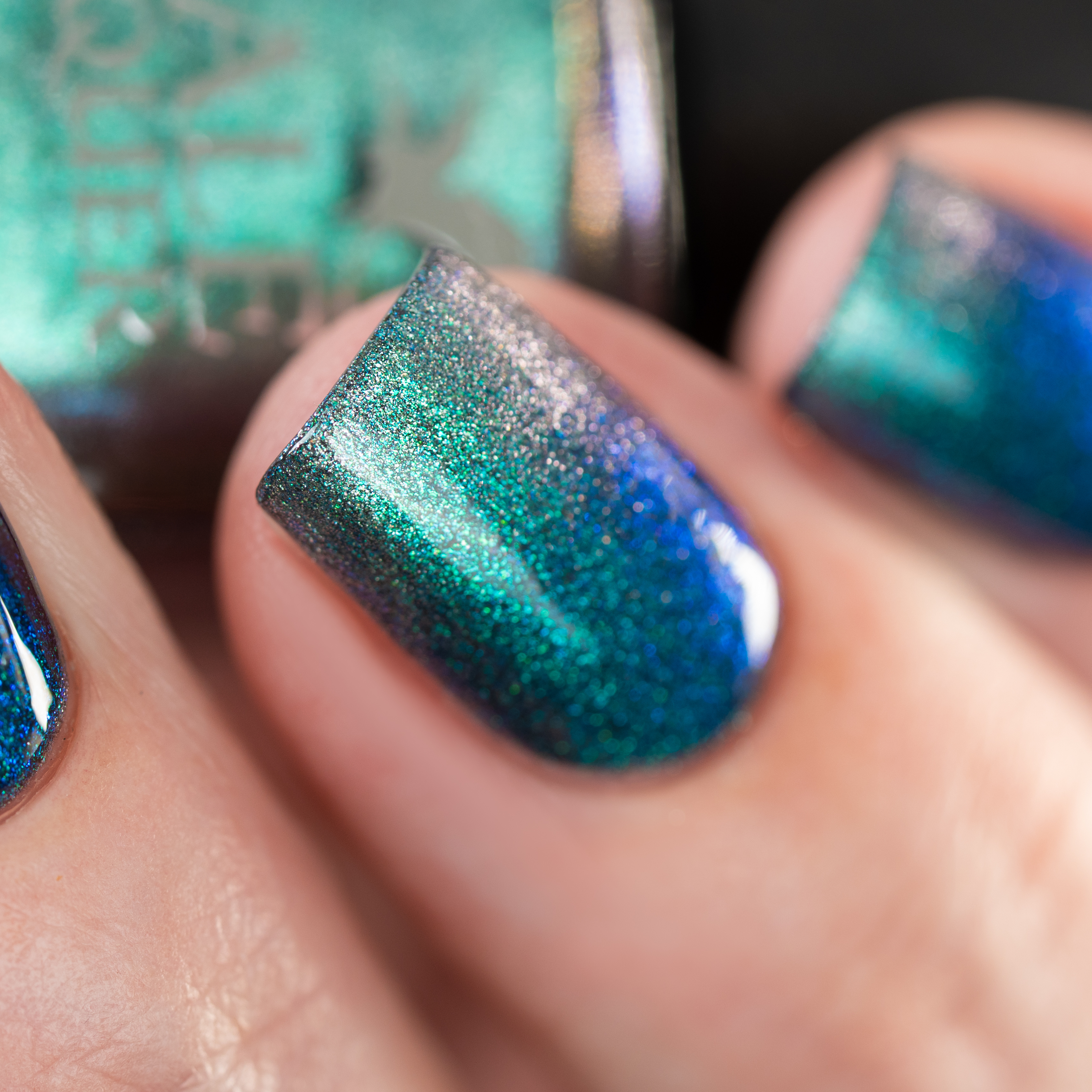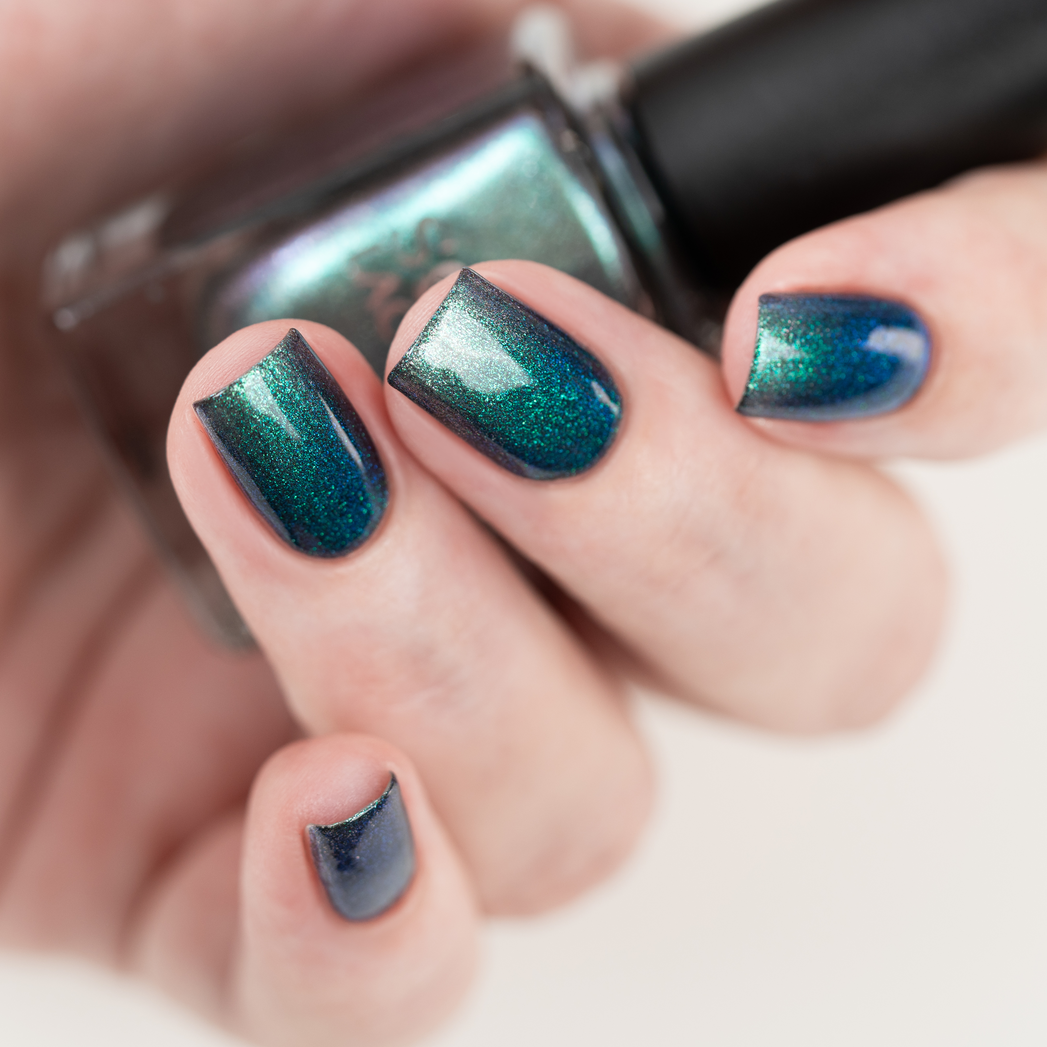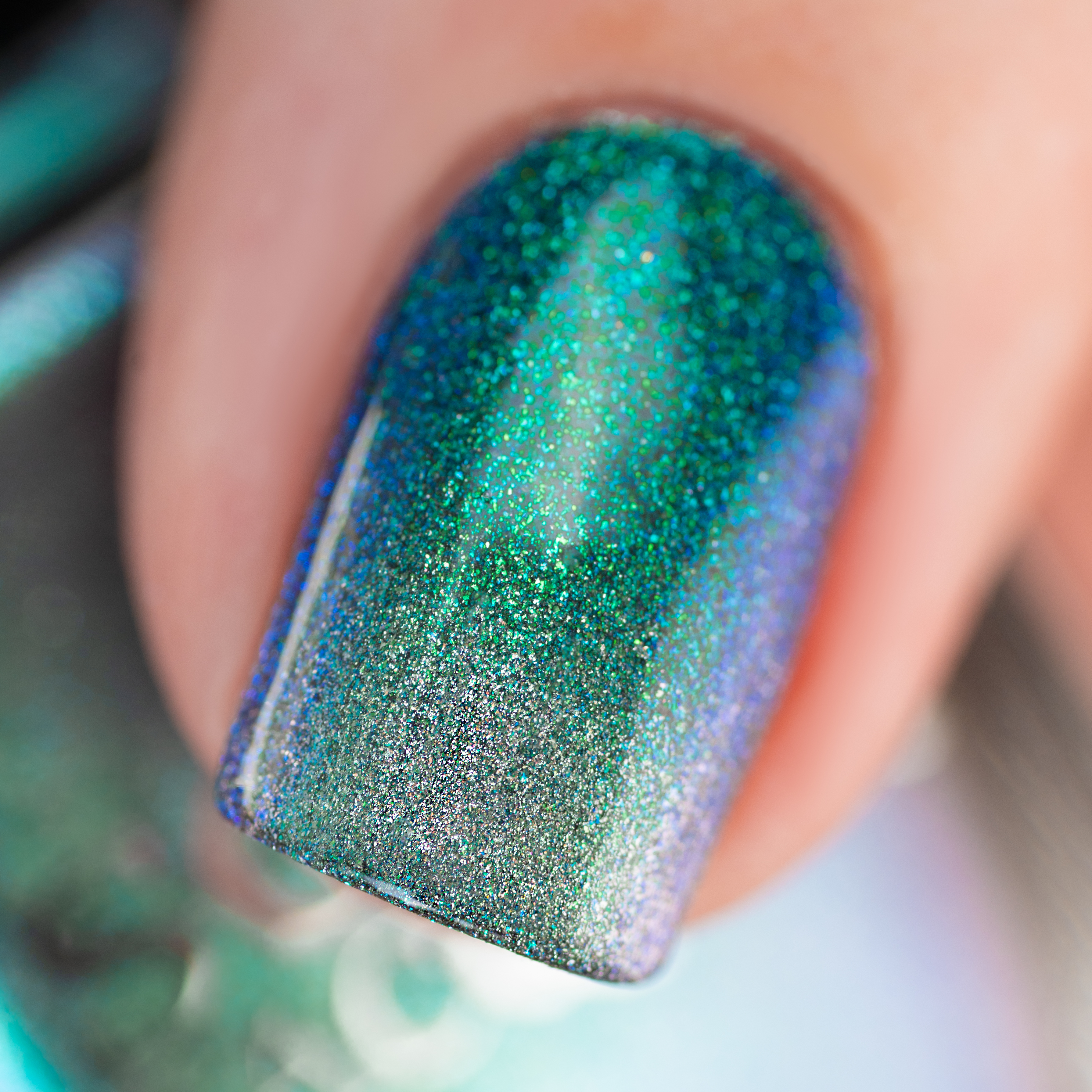 Серебряный магнит и бирюзово-синий шиммер в полупрозрачной чёрной базе