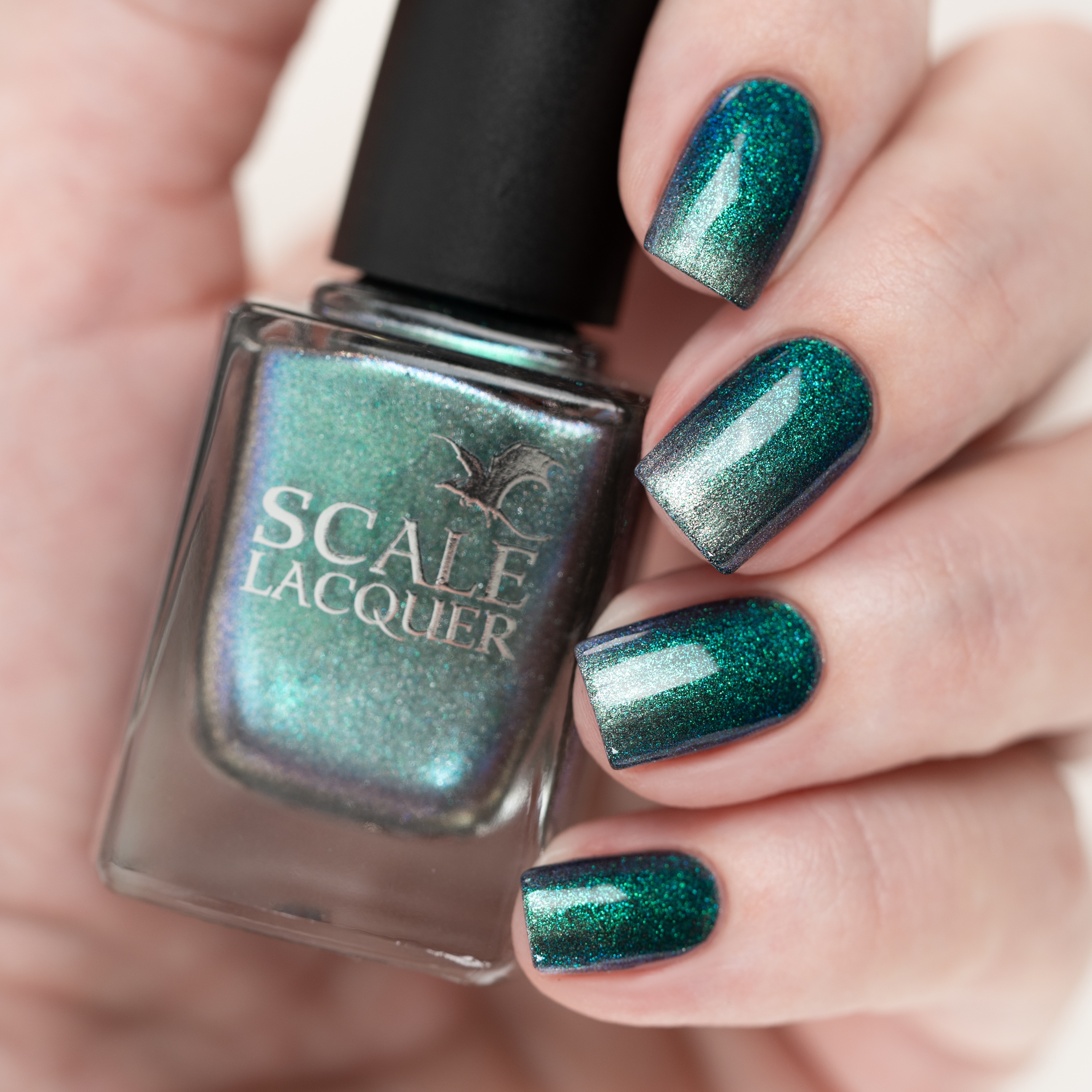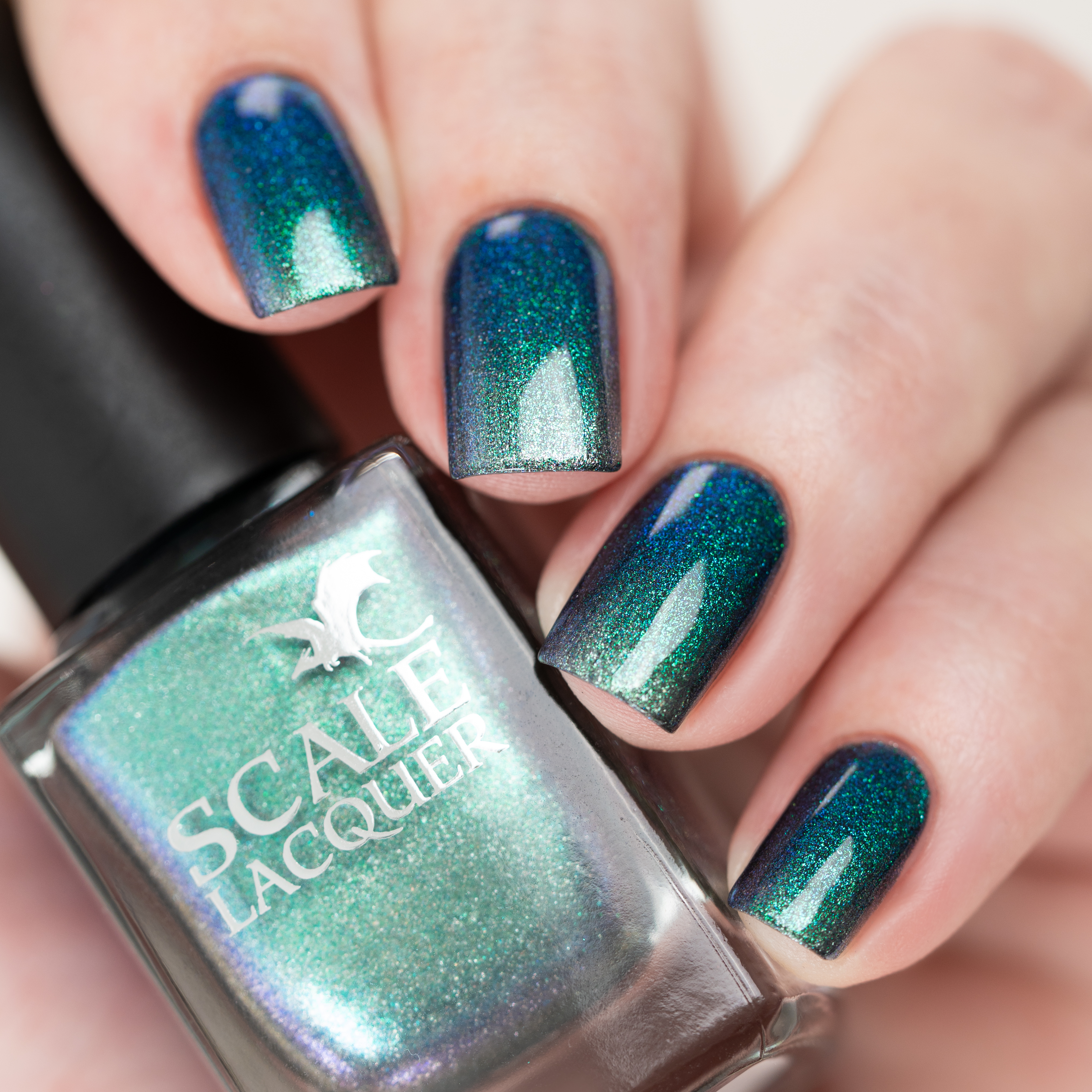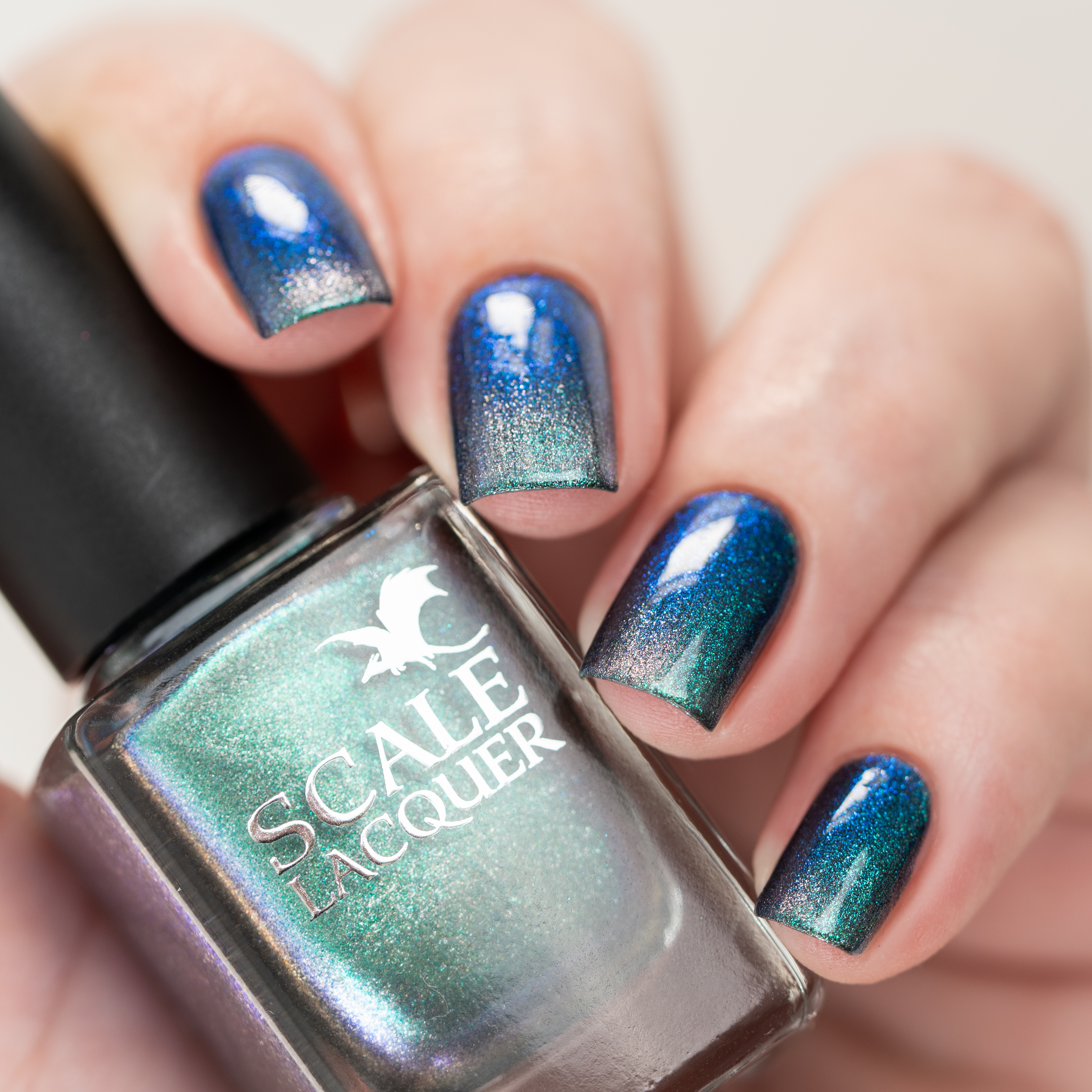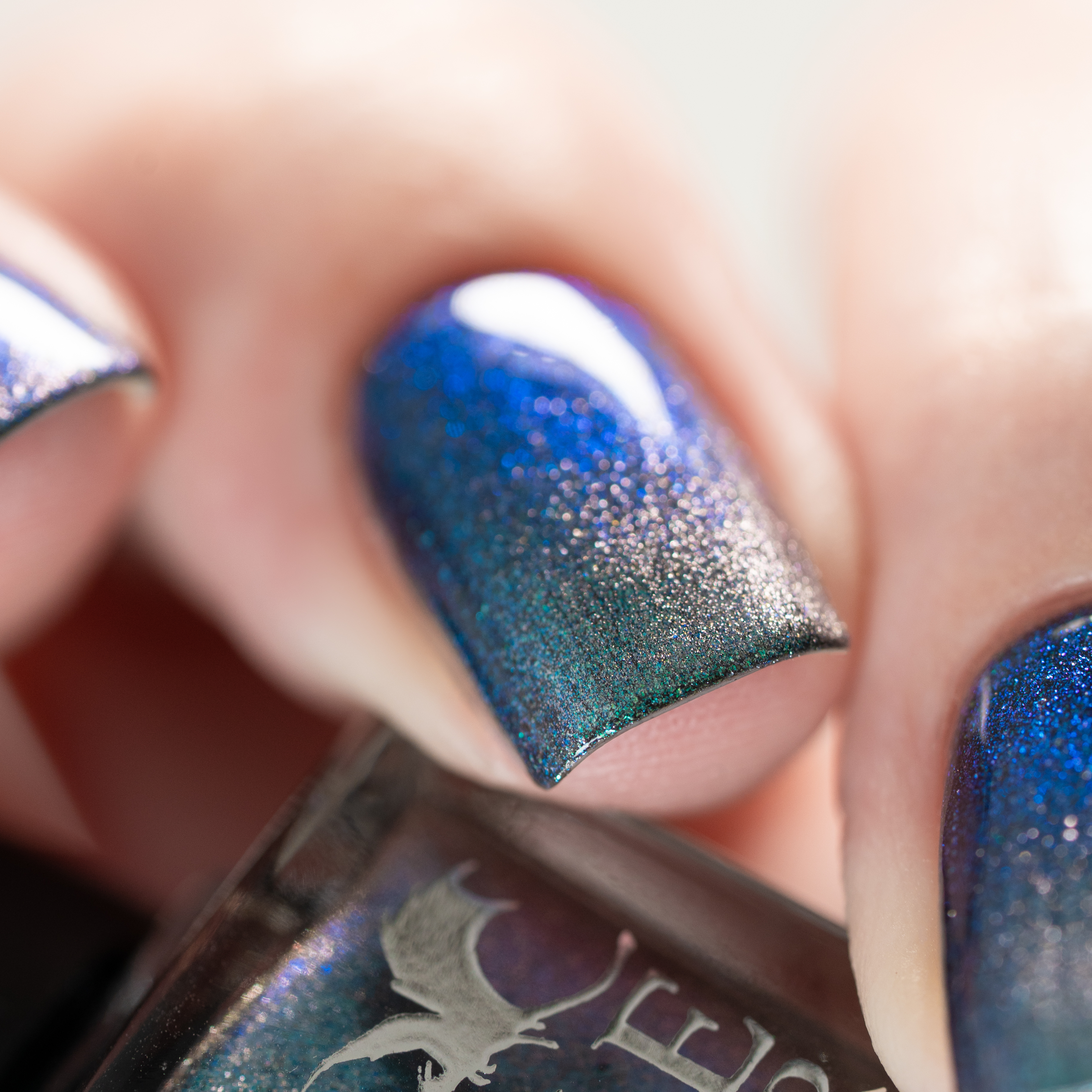 Серебряный магнит и бирюзово-синий шиммер в полупрозрачной чёрной базе