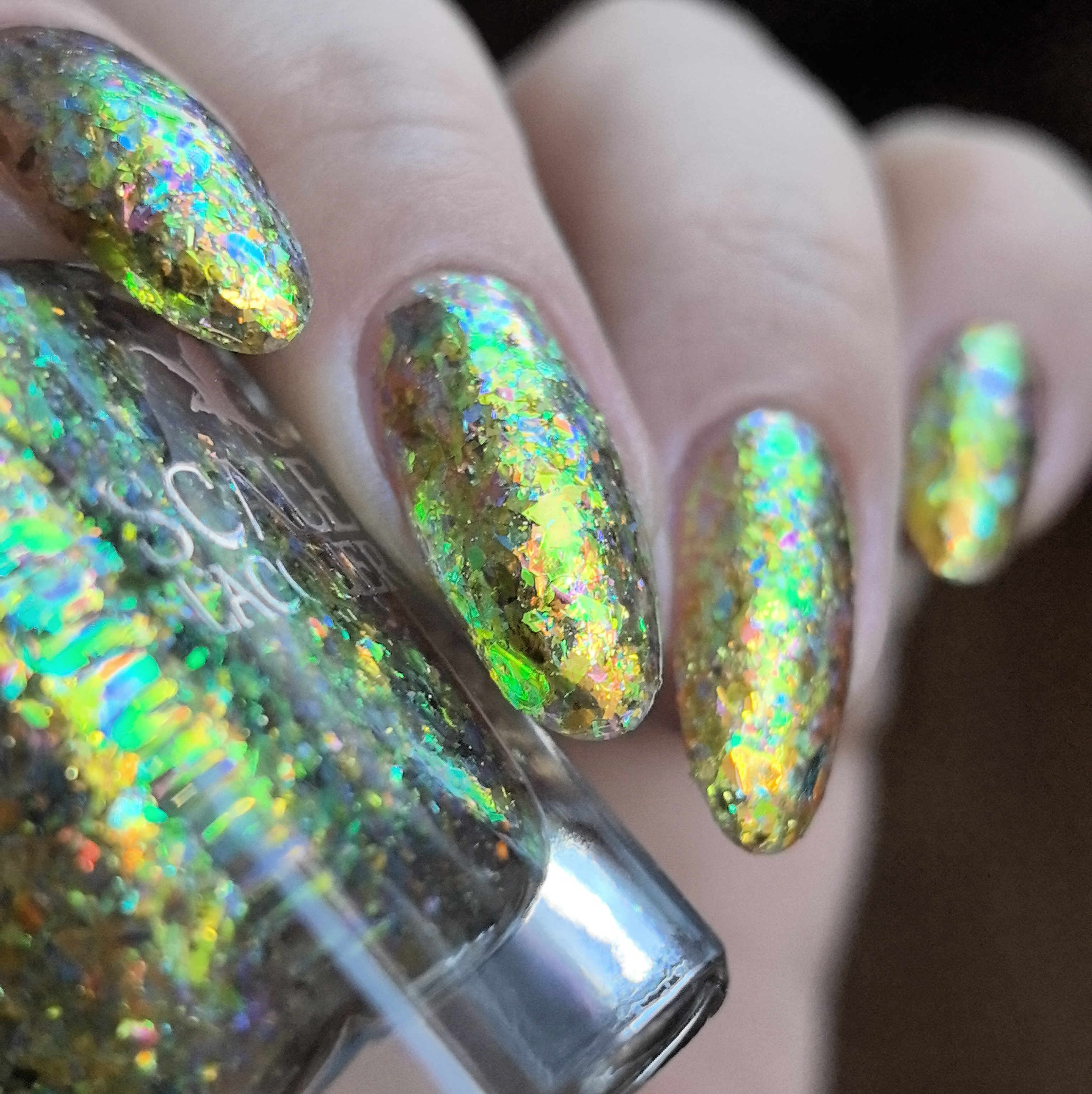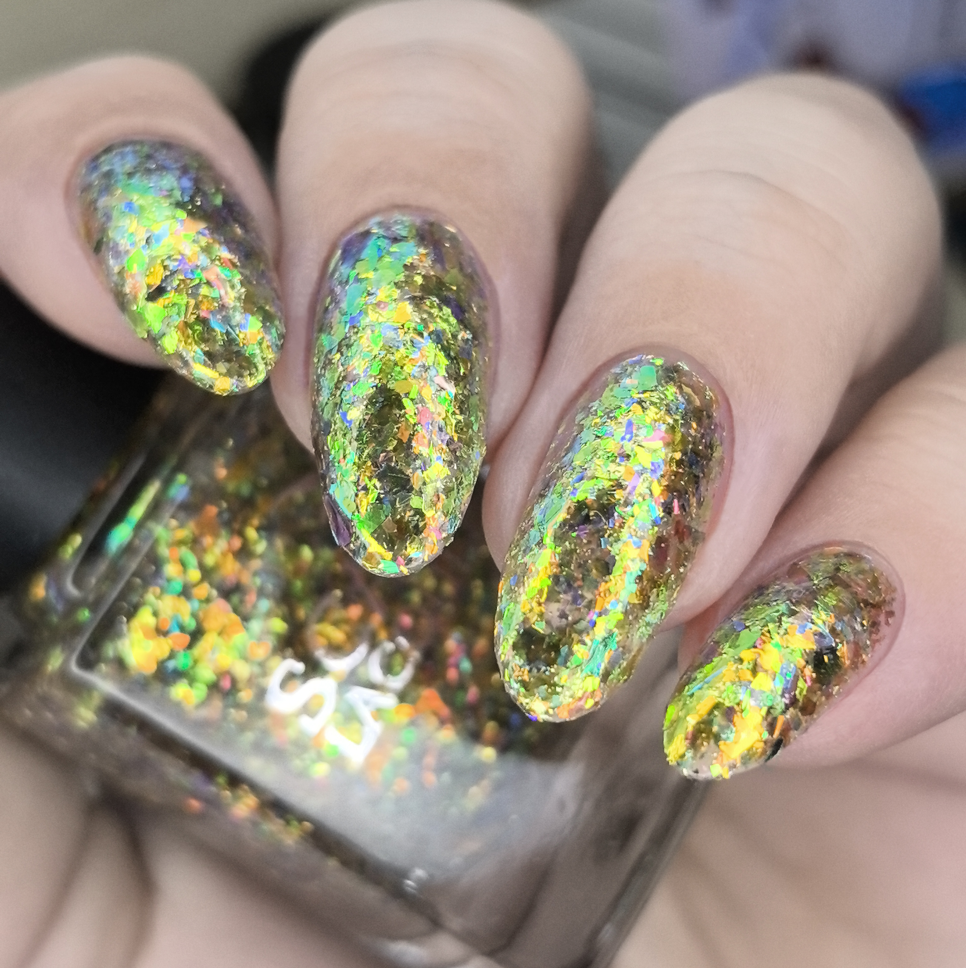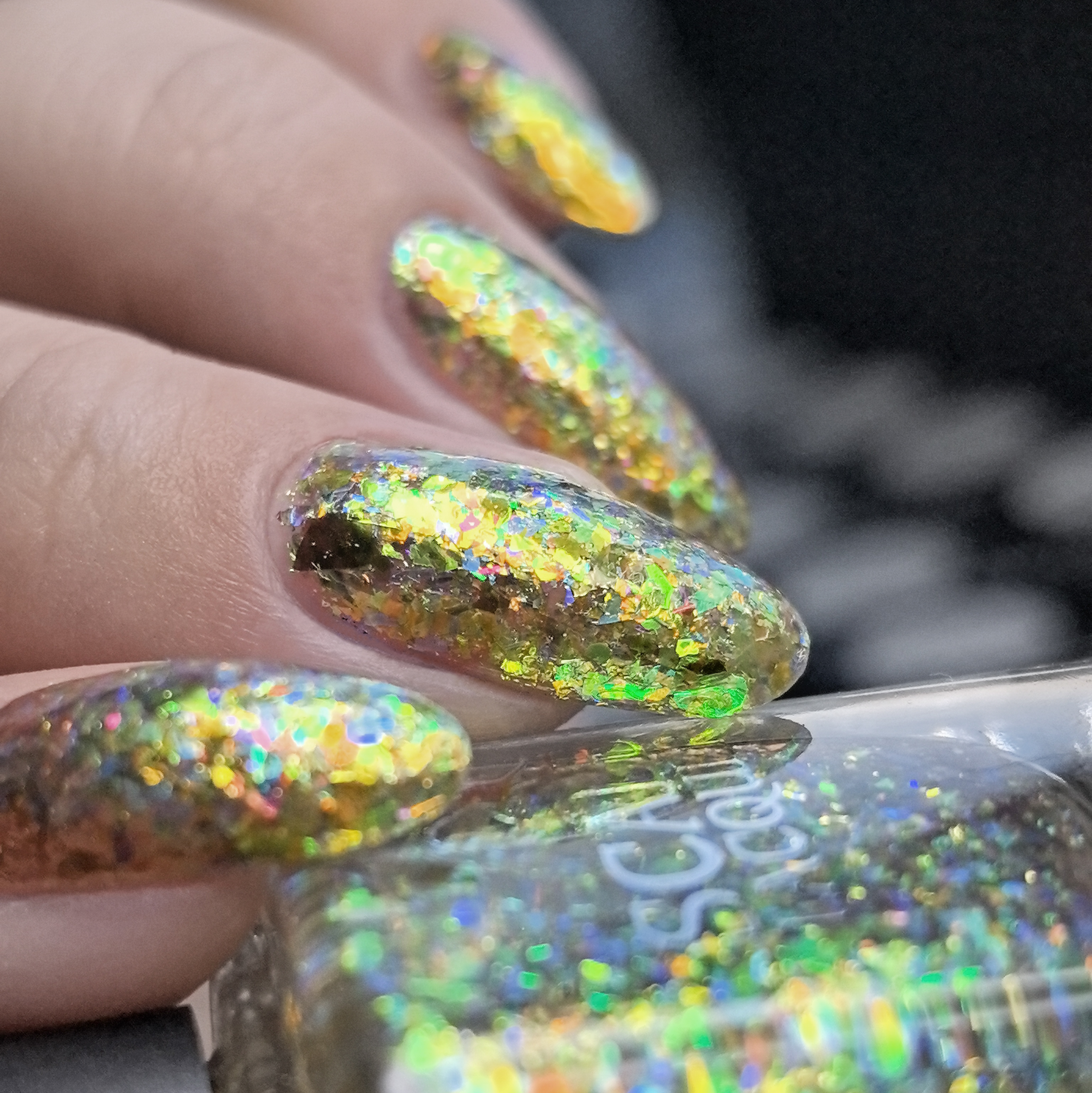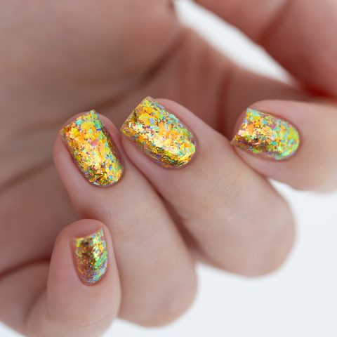 Микс желто-зеленой-оранжевой слюды в прозрачной базе