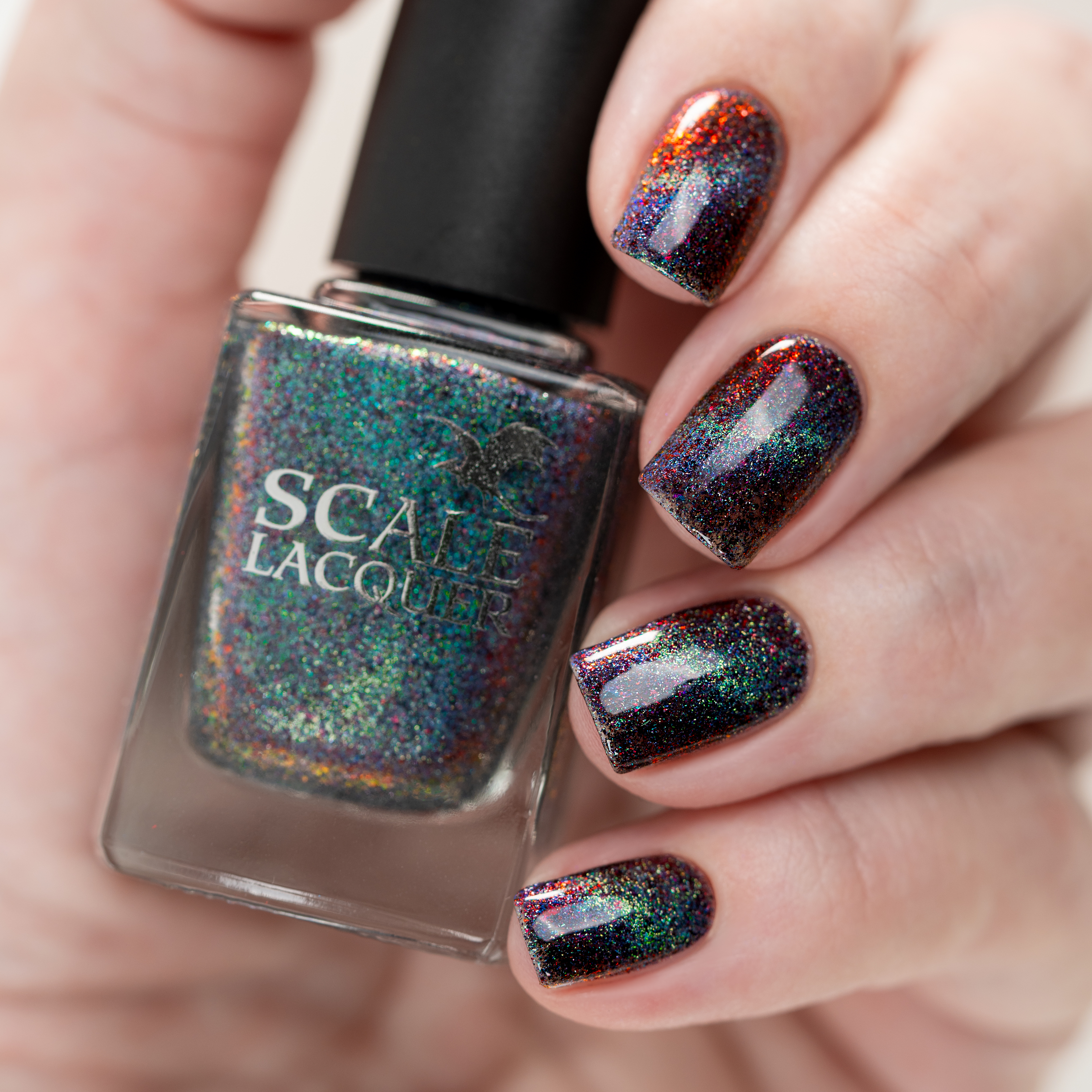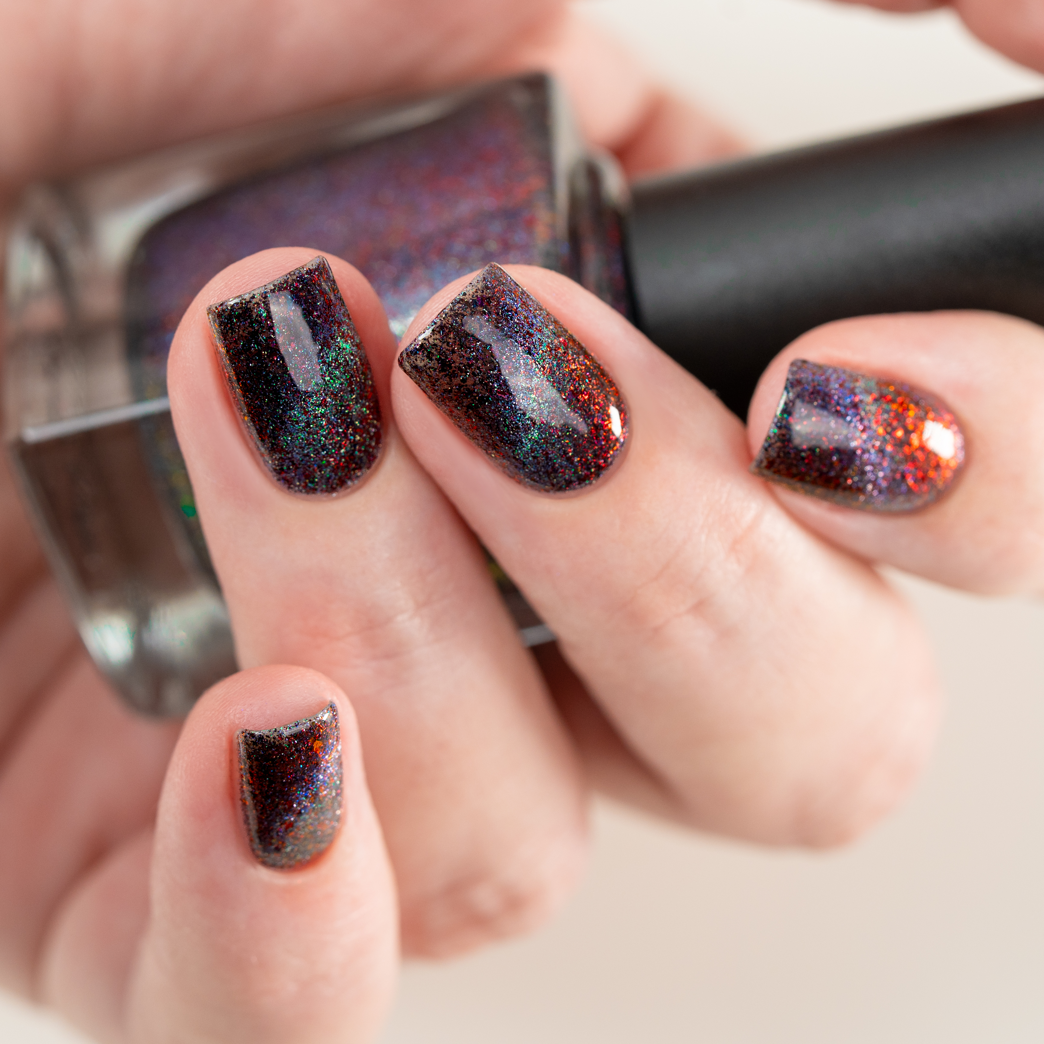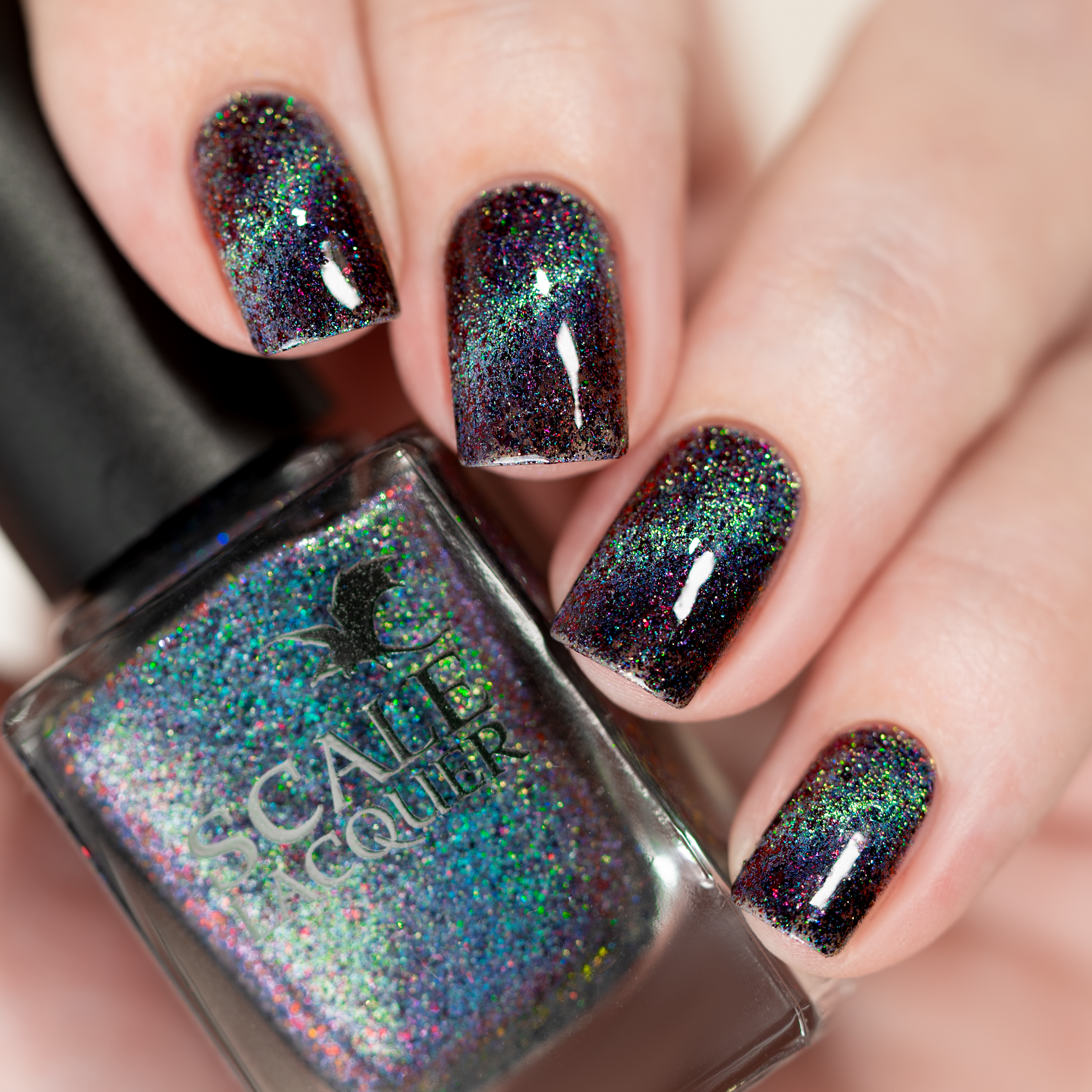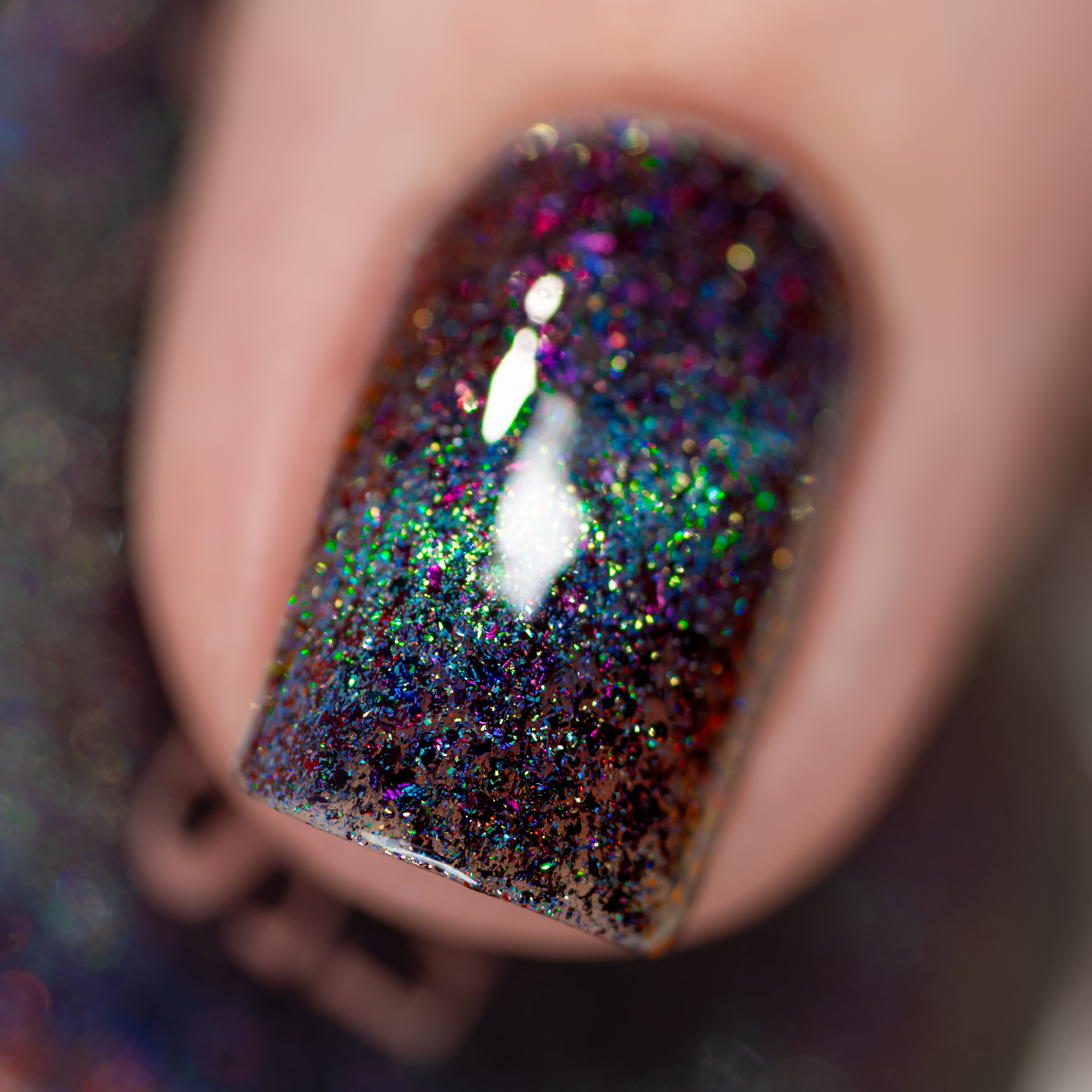 Голографический фиолетово-зеленый магнит и черно-красные хлопья в прозрачной базе
