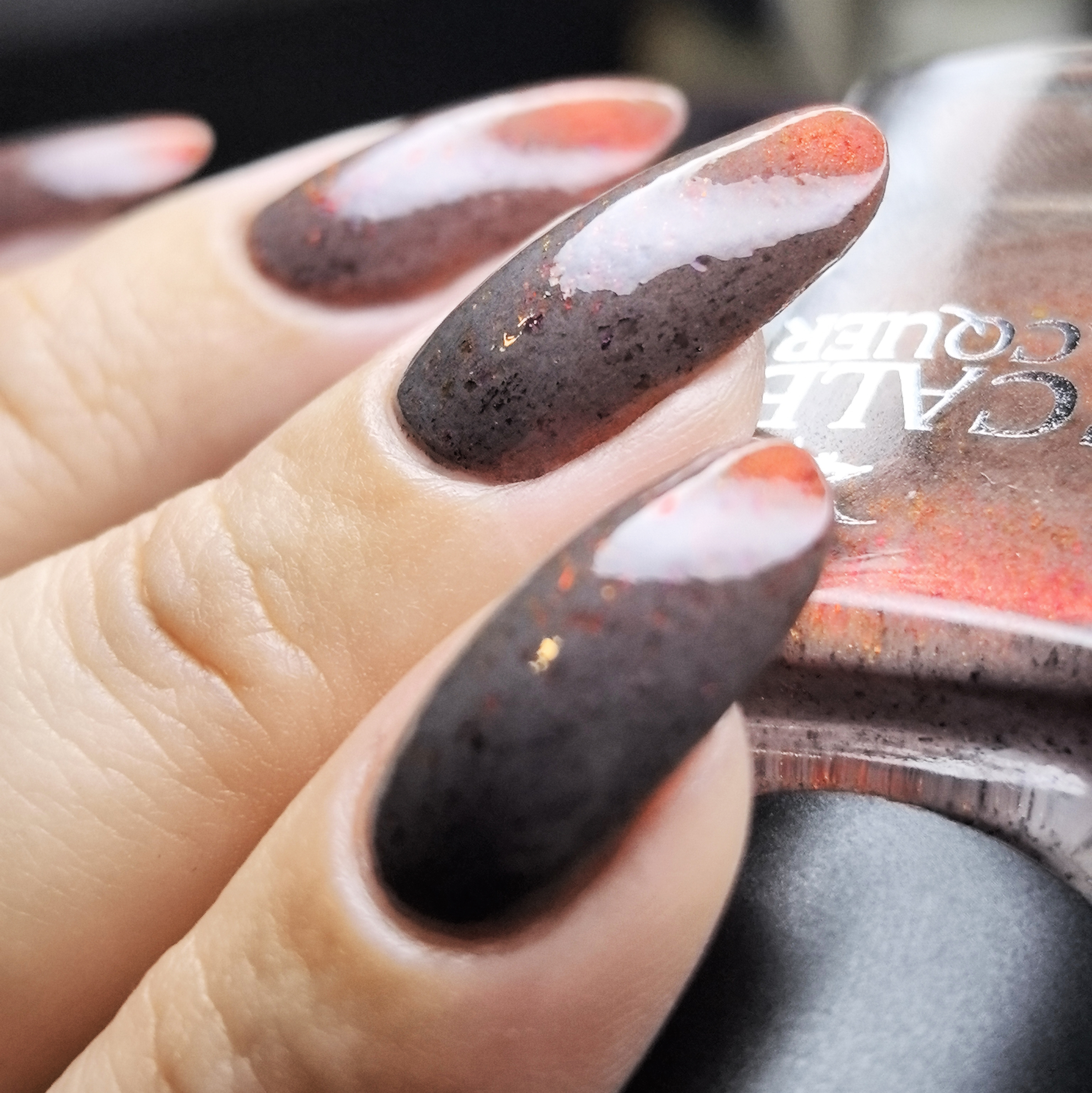 Красный магнит и разноразмерные черно-красные хлопья в серой базе