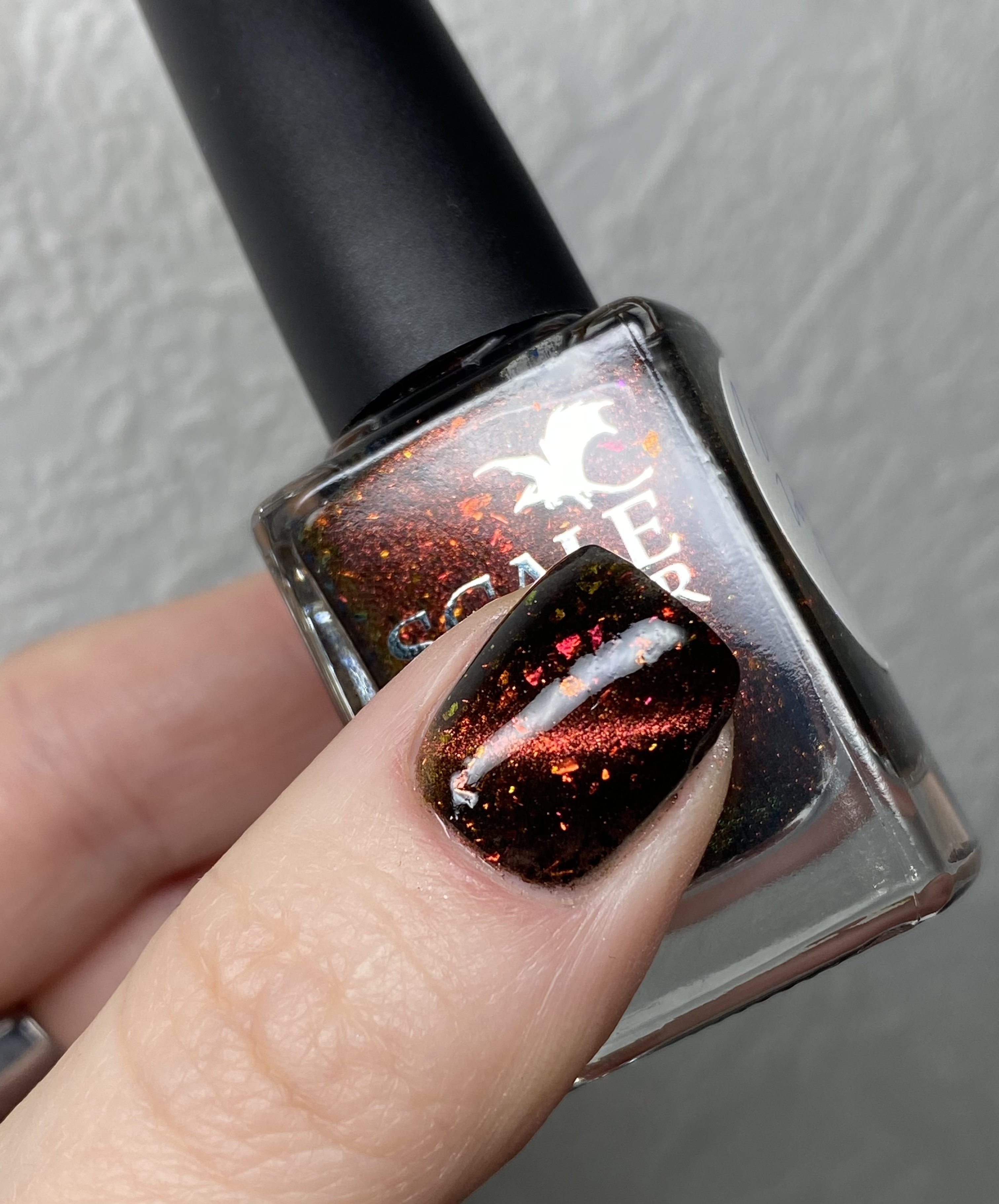 Красный и оранжево-красный магнит и мультихромная красно-оранжевая слюда в прозрачной базе